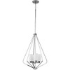Introducing the Elevate Collection 4-Light Matte Black Steel Pendant Hanging Light by Progress Lighting. This modern pendant light features a sleek angular frame finished in matte black, creating a contemporary aesthetic. The 20" width and 30" height make it a striking addition to any space. The light is designed for dry rated areas and comes with an 8" chain for adjustable hanging. With four incandescent bulbs at 75 watts each, it provides elegant illumination. The light also includes a 5.13" canopy and etched white glass cylindrical shades for a polished look. Elevate your space with this sophisticated and stylish pendant light.
