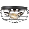 Progress Lighting, Gauge Collection, 2-Light Flush Mount, Graphite Finish, Open Cage Design, Steel Frame