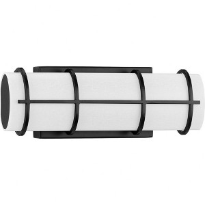 Progress Lighting Grid 1-Light LED Bath Vanity Light, Matte Black, White Linen Shade, Damp Rated