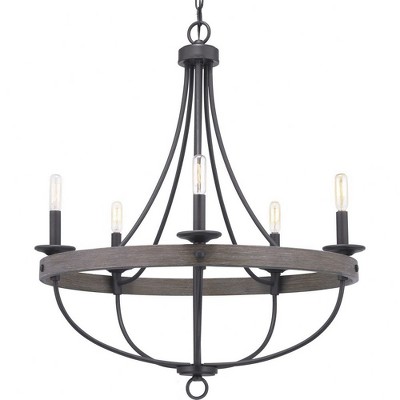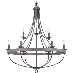 Progress Lighting Gulliver 9-Light Chandelier, Graphite, Wood Grained Texture Shade