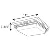 Introducing the Helm Steel LED Flush Mount, a contemporary and versatile lighting solution for your space. This uniquely styled fixture features a brushed nickel finish and a sleek 11" square design with architectural detail. The acrylic diffuser provides a soft, even light, while the LED technology offers energy efficiency and long-lasting performance. With a moisture rating of damp rated, this fixture can be mounted to the ceiling or wall, making it suitable for a variety of spaces. The 3000 Kelvin color temperature and 90+ CRI ensure high-quality, natural-looking light, with 1,211 lumens and 17 watts of power. The Helm Steel LED Flush Mount is the perfect combination of style and functionality for any modern interior. Canopy and shade included for easy installation.