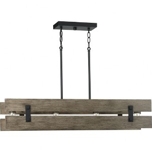 Progress Lighting, Hemsworth, 4-Light Island Light, Black Finish, Aged Oak Frame, Barn-Inspired Design