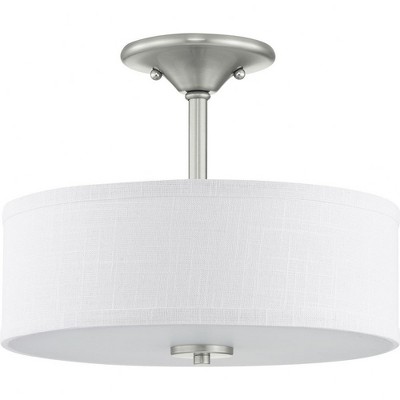 Introducing the Kene semi-flush mount, a modern and romantic addition to your home. Crafted from fabric with a brushed nickel finish, this fixture exudes luxury and softness. The quiet linen shade is held in place by elegant brushed nickel arms, creating a graceful and inviting ambiance. With a width of 16" and a height of 10.88", this fixture requires assembly and comes with a canopy and chain for easy installation. Illuminate your space with the warmth of two incandescent bulbs, each with a maximum wattage of 75 watts. Perfect for dry rated areas, this semi-flush mount is a beautiful and functional choice for any room.