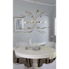 Introducing the Mariposa Collection 8-Light Antique Gold Contemporary Hanging Pendant Light by Progress Lighting. Crafted from steel with a gilded silver finish, this stunning pendant light measures 36" in width, 25" in height, and 36" in length. It comes with a chain length of 8" and features a dry rating for moisture. The light uses incandescent bulbs with a wattage of 60 watts and can accommodate 8 bulbs. The naturalistic design features slender branches blooming outward from the central stem, adorned with delicate leaves in an antique gold finish. The minimalist lines of its multi-directional light arrangement create a perfect balance. The product includes a canopy with a diameter of 5" and comes with chain and rod lengths for customizable installation. Elevate your modern room design with the organic elegance of the Mariposa Collection pendant light.