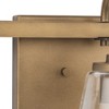 Introducing the Martenne Three-Light Vanity Light, a versatile and stylish addition to your bathroom. This fixture features a substantial steel frame hand-painted in an elegant aged bronze finish, perfectly complementing modern farmhouse, urban industrial, and transitional designs. The seeded glass shades add a touch of sophistication, casting a lovely illumination. Measuring 24" in width by 8.5" in height and extending 7" from the wall, this fixture can be mounted up or down to suit your design preferences. It uses three 60-watt medium base bulbs (sold separately) or LED equivalents, and is dimmable when used with a dimmable bulb. With a cULus Damp location listing, this fixture is suitable for rooms where moisture may be present. Backed by a 1-Year Limited Warranty, it includes installation instructions and mounting hardware for easy installation. Elevate your bathroom with the Martenne Three-Light Vanity Light, combining contemporary elements with a rustic modern design.
