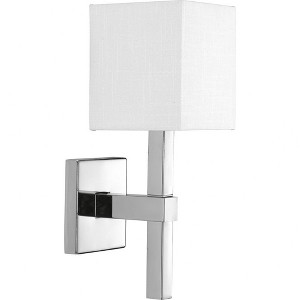 Progress Lighting Metro 1-Light Wall Sconce, Polished Chrome, Linen Shade