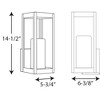 Introducing the Progress Lighting Patewood Collection One-Light Medium Wall Lantern. This modern outdoor light features a sleek Black finish and a durable stainless steel construction, ensuring years of reliability. The shadowbox housing adds a contemporary touch, while the pillar candle style diffusers provide crisp illumination for a pleasing complement to your home's exterior. With a width of 5.75", height of 14.5", and depth of 6.38", this wet-rated wall lantern is perfect for outdoor spaces. It uses incandescent lighting with a wattage of 100 watts, and comes with a shade included. Elevate your outdoor lighting with the Patewood Collection Wall Lantern.