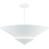 Introducing the Pinellas Close-to-Ceiling Light from Progress Lighting's Design Series. Crafted from steel with a white plaster finish, this modern fixture measures 25" in width and 10.75" in height. With a damp rating, it's suitable for various rooms. The dual conical motif provides a pleasing diffusion of light, making it perfect for halls, foyers, bedrooms, and living rooms. This fixture accommodates 4 incandescent bulbs with a maximum wattage of 40 watts each. It can also be used with LED bulbs and is dimmable when paired with a dimmable bulb. The package includes installation instructions and mounting hardware, and it comes with a 1-year limited warranty. Elevate your space with the contemporary elegance of the Pinellas Close-to-Ceiling Light.