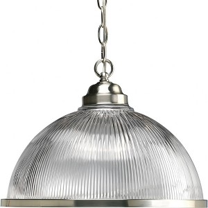 Progress Lighting, Prismatic Collection, 1-Light Pendant, Brushed Nickel, Clear Prismatic Glass Shade
