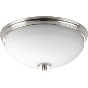 Progress Lighting Replay 2-Light Flush Mount, Brushed Nickel, White Glass Shade