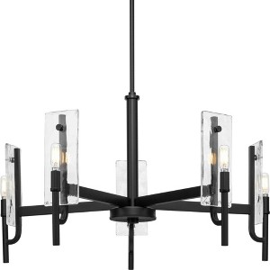 Progress Lighting, Rivera Collection, 5-Light Chandelier, Matte Black, Clear Textured Glass.