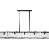 Introducing the Rivera Collection from Progress Lighting, featuring a stunning steel fixture with a matte black finish. The 51.25-inch long, 14.25-inch wide, and 8-inch high design is accented with linear segments and handcrafted, clear textured glass, creating an otherworldly effect. This modern craftsman-inspired piece is perfect for accenting dining rooms, great rooms, and kitchens. With a dry rating, this fixture is suitable for indoor use and comes with a 1-year limited warranty. It accommodates 5 incandescent bulbs with a wattage of 60 watts each, offering soft, ambient illumination. The fixture includes installation instructions and mounting hardware for easy setup and is part of the Progress Lighting Design Series, offering fashionable styles and affordable luxury lighting for the home.