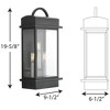 Introducing the Santee Collection from Progress Lighting, where classic meets contemporary. Constructed with durable steel and finished in Antique Bronze, this three-light wall lantern is designed to withstand outdoor elements with its wet rating. The geometric frame and graphic handle add a modern touch, while the wider beveled glass provides enhanced refraction and visual interest. The option for painted brass candles within the Antique Bronze frame adds a timeless elegance. With a width of 9.5", height of 19.63", and depth of 6.5", this lantern is perfect for illuminating outdoor spaces. The incandescent bulbs with a wattage of 60 watts offer ample lighting. Elevate your outdoor decor with the Santee Collection.