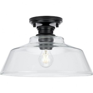 Progress Lighting Singleton 1-Light Medium Semi-Flush Mount Ceiling Light in Matte Black with Clear Glass Shade