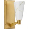 The Tosca Collection exudes a sense of motion from a gracefully tapered arm that transcends traditional design boundaries. The Brushed Bronze wall light holds a geometric glass shade crafted with a faux alabaster finish that radiates patterns of light and shadow, adding depth and warmth that enchant any room.�This fixture is part of the Progress Lighting Design Series, a lighting collection offering fashionable styles and luxury lighting for the home. The wall bracket's graceful design is perfect for dining rooms and bedrooms / This stunning light is ideal for Modern Luxe and Soft Modern settings / A Brushed Bronze finish enhances the fixture's striking silhouette / Its faux alabaster shade radiates lovely patterns of light and textures when illuminated / The scale and design of this fixture creates a captivating focal point in rooms / Uses (1) 60-watt max candelabra base bulb or LED equivalent, that is sold separately, and dimmable when used in conjunction with a dimmable bulb / Meas