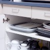 Experience functionality and efficiency with this thoughtfully designed Progressive Prepworks Large Collapsible Dish Rack. It collapses to 1/3 of its original size and will fit perfectly in your kitchen. Its 16" x 19" size holds eight plates with an additional, removable silverware tray, and its reversible drainboard is angled to drain water on one side and hold water on the other. This do-it-all dish rack is the countertop organizer you didn't know you needed!
