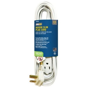 This Projex Indoor 12 ft. L White Slim Plug Cord 16/3 SPT-2 is a great choice for your indoor needs. Perfect for any household appliance such as clocks, lamps, fans and more. Allows you to push the furniture closer to the wall in your own way.
