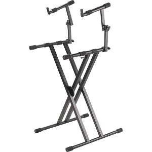 The ProLine PL402 2-Tier Double X-Braced keyboard stand provides an incredibly stable yet highly adjustable platform for keys. Its innovative double X-brace design and fully welded contact points give peace of mind that equipment will remain securely in place during any performance or practice session. Quick-release levers on the PL402's two tiers allow to easily adjust height from 26" to 37" on the first tier and 39" to 51" on the second, as well as width, to suit specific gear setup needs. With a 110lb. maximum load capacity between its two tiers, this stand supports most medium to full-sized keyboards with ease.