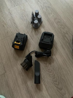 [This review was collected as part of a promotion.] This shop vac gets the job done, although the battery life is short. I decided to test it out in our minivan, since it was overdue for a clean when the shop vac arrived. After charging for 2.5 hours, the vacuum was ready for use. The lightweight portability made the job easy to get around the car seats and in all the crevices. The battery died after about 40 minutes. After recharging, I used it again to clean up the mess from a drywall repair. Again, the portability of this unit was very helpful and made for a quick clean up. For both jobs, the suction on both settings was strong and I had zero issues with the vacuum itself. The multiple attachments came in handy, and I like how they fit nicely onto the until and don’t get knocked off during use. The only problem I have with the vacuum is the short battery life. I wouldn’t expect a super long battery life given that it’s a travel unit, but I did expect longer than 40 minutes based off a 2.5 hour charge.
