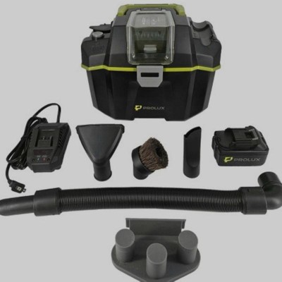 - Tired of buying battery operated items only to have to purchase a battery separate? Prolux ALWAYS includes a battery! 18V battery-powered brushless motor paired with a 4Ah battery. This dynamic duo ensures reliable performance for all your wet, dry, and blowing cleaning tasks, providing up to 47 minutes of run time*! Extra batteries are available!