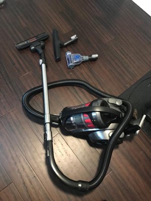 [This review was collected as part of a promotion.] This is a nice bagless canister vacuum that is easy to pull and move. Has good suction and many attachments for various needs. Things I like best: the small rotating head attachment is great for steps and furniture. It has a retractable 25 foot cord which is easy to retract. It gets under beds and other hard to reach places where a large vacuum can’t get to. For the price point, this is a nice vacuum that works very well in carpet-less floors. Things that could be improved: the attachments don’t go on or come off without a lot of elbow grease. The plastic part that holds the attachments on the canister fall off frequently. The floor attachment for carpet is not easily rolled over a plush rug, so I wouldn’t recommend this if you have carpet.