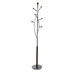 Proman Products Silver Tree Coat Rack Walnut: Metal Frame, 7 Hooks, 68" Tall, Freestanding Design