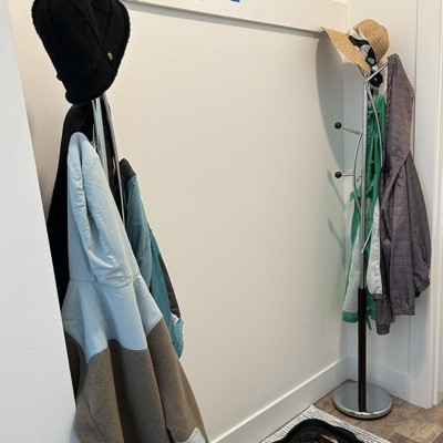 This is such a nice coat rack. I bought it for my bedroom to put purses and jackets on. I like the modern silver and how it winds around on top. It’s very sturdy and it was easy to put together. I liked the price too. I recommend this coat rack if you need one.
