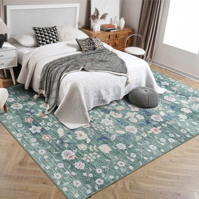 Promotion Sale! 5x7 ft Christmas Runner Rug, Red Polyester, Christmas Tree Print, Machine Washable, Non-Slip, Indoor Hallway, Green