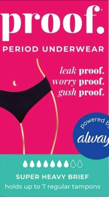 - BACKED BY ALWAYS®: Proof’s absorbent Leak-Loc® Layer technology was tested and developed in partnership with the trusted makers of Always®.
