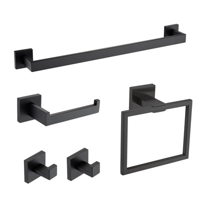 A sleek accessory for a modern bathroom, the PROOX 5 pieces bathroom hardware set features a square shape and simple details. Easy to install, this product will quickly change the appearance of your bathroom. Mounting hardware is included for easy installation.