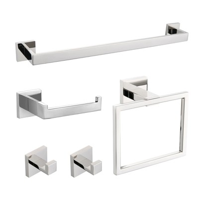 - The bathroom hardware accessory sets are designed with clean lines and sturdy construction. Unique squared shape and concealed mounting hole add a touch of modern design to your bathroom, chamfering edges protect your body from scratching.