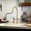 The PROOX Pull Down Bridge Kitchen Faucet,adds a touch of modern elegance to any kitchen decor while also being beautifully classic. With its two-handle design, you can easily adjust the temperature and flow to your liking or control only the cold water when needed. The faucet also features a three-function Pull Down Sprayer Head that provides additional functionality for washing dishes and food or rinsing down the sink. Additionally, its spray head allows you easily navigate between a smooth stream or a powerful and sweeping spray. The faucet is constructed of stainless steel including ceramic disc valves, ensuring smooth handle operation and durable performance.