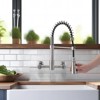PROOX Double Handle Wall Mounted Bridge Kitchen Faucet with 3-Function Pull Down Sprayer Head