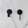 This elegantly designed wall mount sink faucet is crafted from solid brass, ensuring exceptional durability and long-lasting reliability. Finished with a high-quality matte black coating, it boasts a corrosion-resistant surface that withstands the test of time. This wall-mount faucet provides a chic solution for saving valuable counter space while seamlessly blending style and functionality. Drawing inspiration from the sleek elegance of modern European design, it adds a touch of sophistication to any bathroom or kitchen setting.