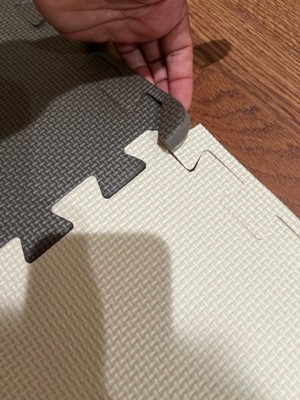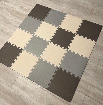 - 16 interlocking 12 x 12-in puzzle pieces with 24 border pieces, covers a 4 x 4-ft area when combined; or just use a few tiles to cover a small area