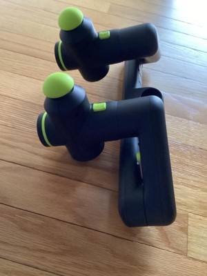 [This review was collected as part of a promotion.] I see the appeal of wanting to have essentially two massage guns instead of one. However, I found having two to be quite limiting, as you have to move the heads pretty often if you want certain areas massaged. It also doesn’t last very long as it overheats and turns off. The heads get stuck easily as well. I liked that it came with different heads to use, the ring seemed useless though.