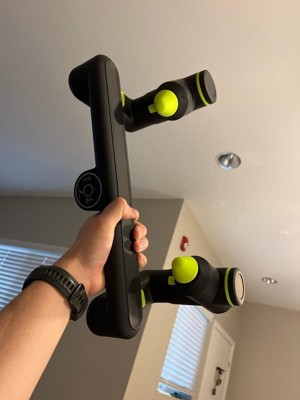 - DUAL MASSAGE GUN: The dual heads of the hand held massage gun give relief to two areas at once with double the percussion heads; each head is attached to an adjustable handle for precise positioning; remote control included for convenient operation