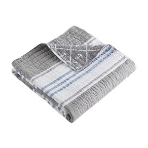 - COORDINATE YOUR ROOM DECOR: Create a wonderful bedroom space with our coordinated reversible quilted throw. The grey, white, and blue design brings cool coastal into your home and will match a variety of different looks and bedroom decor. You can also freshen your room with other items from the Provincetown collection.