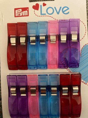 Prym Love Fabric Clips are for holding layers of fabric together without creating holes. These large clips will hold up to 5/8" thickness. Ideal for vinyl, leather and any material where pin holes would be undesirable. Use them for all the sewing and craft needs.