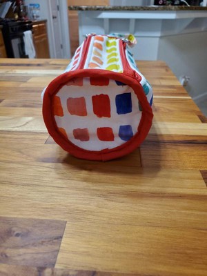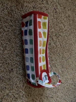 This fun round pouch is the perfect size for storing crochet hooks and accessories. It also coordinates with the Prym Ergonomic Crochet Hook collection. Opens easily with a single pull on double zippers. Side opening makes it simple to see and access what's inside. Hook and loop tape keeps flap in place while opening and closing roll.
