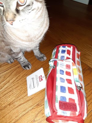 [This review was collected as part of a promotion.] I love this little zip up pouch that is the perfect size for all my crochet hooks and accessories. It is so easy to zip up with the top opening and loop tape, which is nice to have with my arthritis hands. I also must say I really enjoy the fun colors it has for the pouch design on the fabric. So cheerful colored. Fits my life and crochet needs, thank you!