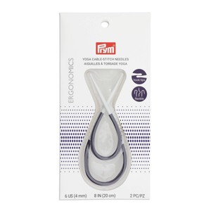 Prym Ergonomic Yoga Cable-Stitch Needle has a flexible shaft that can be bent into any desired shape and holds stitches without slipping. The patented teardrop shaped tips easily pick up stitches, help keep stitch on needle, and prevent yarn splitting. The synthetic material that they are made of makes them lightweight, flexible, and warm to hold for knitting.
