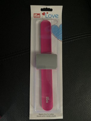 Prym Love Magnetic Wrist Pin Cushion combines a slap band bracelet and magnetic pin cushion. Band is one size fits all. Wrap around your wrist so your pins are always with you and ready to be used. Use to hold pins, paper clips, screws or any small item that will stick to a magnet.