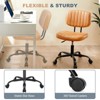 Perfect for those who need a dedicated, adjustable-height workspace, this swivel task chair is aptly designed to meet all challenges. Its design carries an appealing vintage look, featuring a metal frame and an intricate vertical channel tufting, however, it brims with modern comfort. Encased in soft, inviting PU leather, both the seat and back are expertly contoured to offer unwavering comfort. Its seat thoughtfully curves downwards, ensuring enduring relaxation. Exuding style and providing admirable support, this desk chair effortlessly accomplishes its tasks throughout the day.