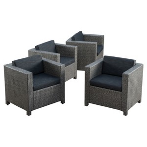 Puerta 4pk All-Weather Wicker Patio Club Chairs - Black - Christopher Knight Home