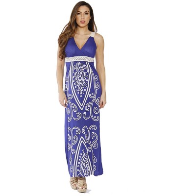 Puff Print Crochet Strap Maxi Dress