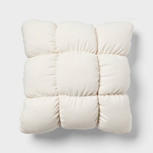 Add a soft splash of style to your decor with this Puffer Square Decorative Throw Pillow from Room Essentials™. Designed in a 16-inch square silhouette, this bolster throw pillow showcases a puffer construction in white for a tastefully textured aesthetic. Made of 100% recycled polyester microfiber with soft filling, this throw pillow is great for use anywhere inside your home.
