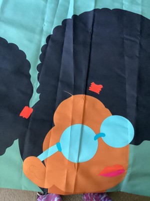 Add a contemporary aesthetic to your bath space with this Puffs Shower Curtain from Room Essentials™. Made of a year-round fabric, the green shower curtain showcases an oversized illustration of a woman with double buns and aqua-color shades to beautifully enclose a bathtub or shower stall for added privacy with a playful vibe. The decorative shower curtain features a buttonhole top for easy installation, and is machine washable for a quick refresh whenever needed.