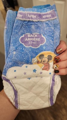 [This review was collected as part of a promotion.] This pull up works very well. My son is potty trained during the day but not at night (or for naps) and still needs something. These fit him great and absorb well. Of course my son loves that Mickey Mouse is on them! And I love that it lists what the back is because thats hard to figure out on a lot of other pull ups!