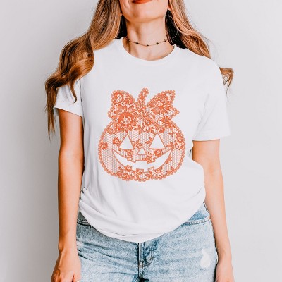 Product Name: Pumpkin Doily Coquette - Youth Long Sleeve Graphic T-Shirt and Toddler Long Sleeve Graphic Tee